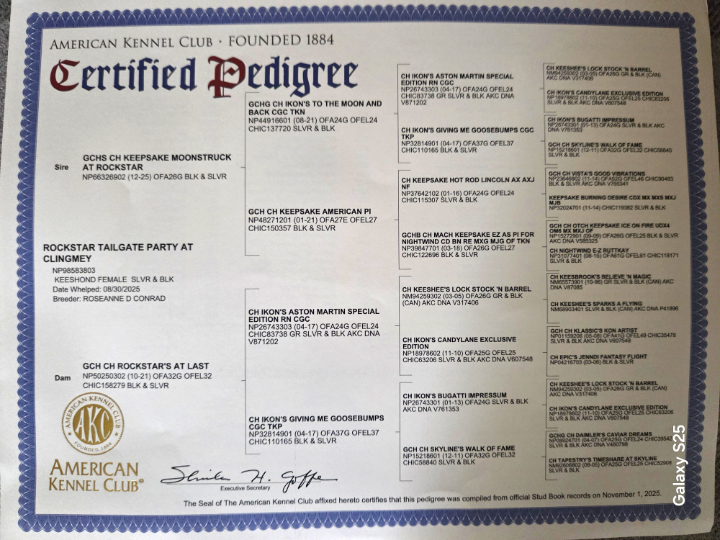 Female Keeshond: Wund-R Y Clingmey has this Gem (Jade)