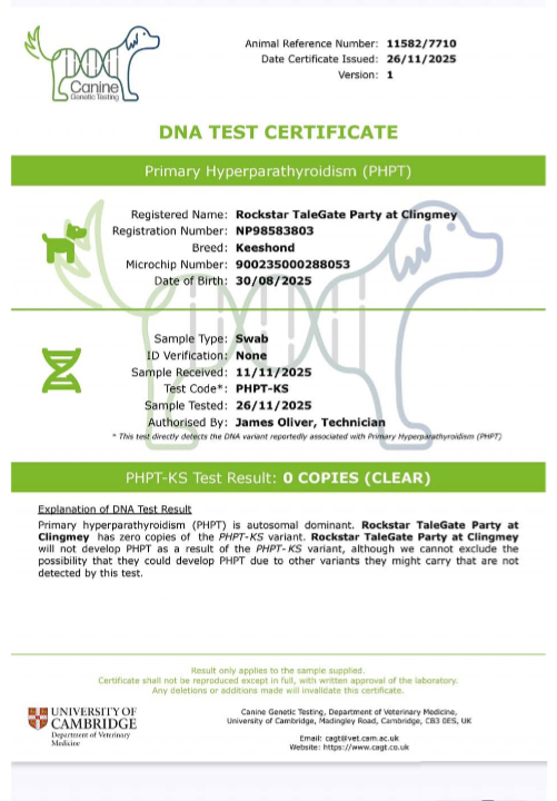 PHPT results | | OFA Cardiac | OFA Patellas | OFA Eyes | OFA Hips | OFA Elbows | OFA CHIC | OFA Thyroid